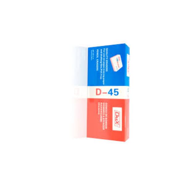 The Dux Eraser No-D45 offers a reliable and efficient solution for erasing mistakes with ease. With a pack Containing 45 erasers, this set ensures an ample supply for extended use at school, work, or home. Crafted with high-quality materials, these erasers provide smooth and precise erasing, leaving behind clean and smudge-free surfaces.